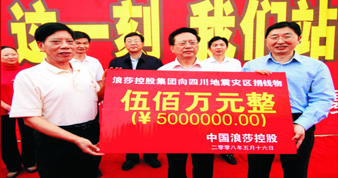浪莎集團(tuán)援助四川共捐贈(zèng)520萬元,其中員工捐款10萬元,客戶捐款10萬元,并在浪莎設(shè)立四川災(zāi)區(qū)客戶創(chuàng)業(yè)基金60萬元,幫助災(zāi)區(qū)重新家園恢復(fù)創(chuàng)業(yè)經(jīng)商。
