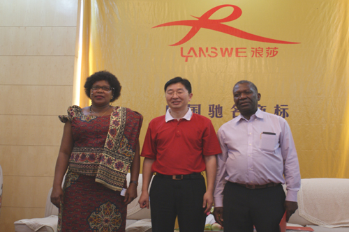 坦桑尼亞工貿(mào)部常務(wù)秘書長(zhǎng)喬伊斯、貿(mào)易發(fā)展局總干事哈希姆?哈勒凡與董事長(zhǎng)合影