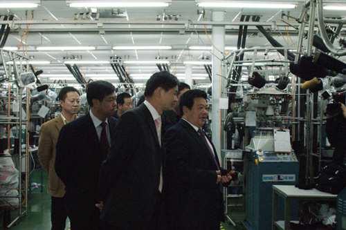 浪莎總裁陪同貴州省畢節(jié)市周書(shū)記參觀公司廠區(qū)