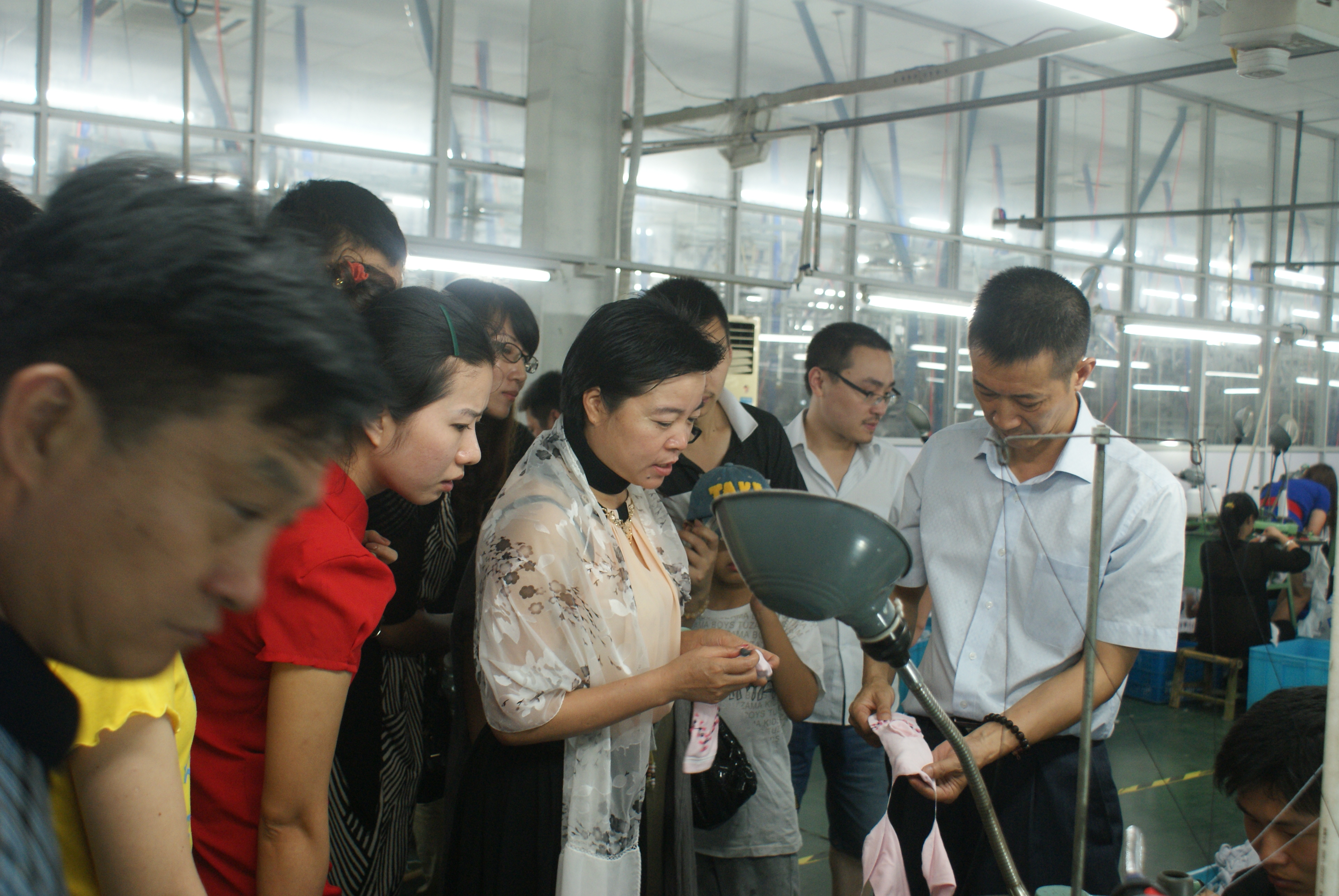 與會人員首先參觀了浪莎三期工業(yè)園,了解了浪莎集團(tuán)的發(fā)展?fàn)顩r、企業(yè)文化,與襪子、內(nèi)衣生產(chǎn)的每一道環(huán)節(jié)來了一次親密接觸。參觀過程中,人大校友、巨龍箱包董事長邵寶玲與工作人員細(xì)心交流。