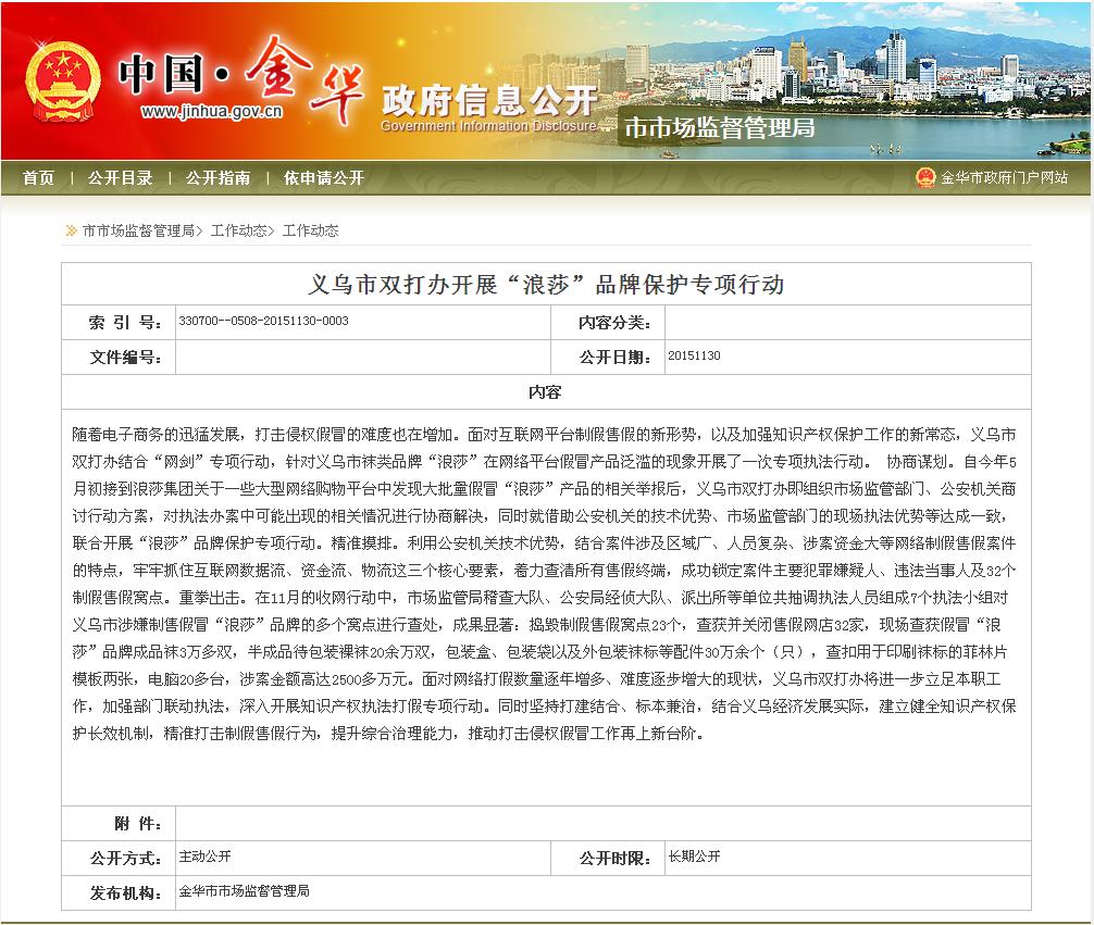 義烏市雙打辦開展“浪莎”品牌保護(hù)專項(xiàng)行動