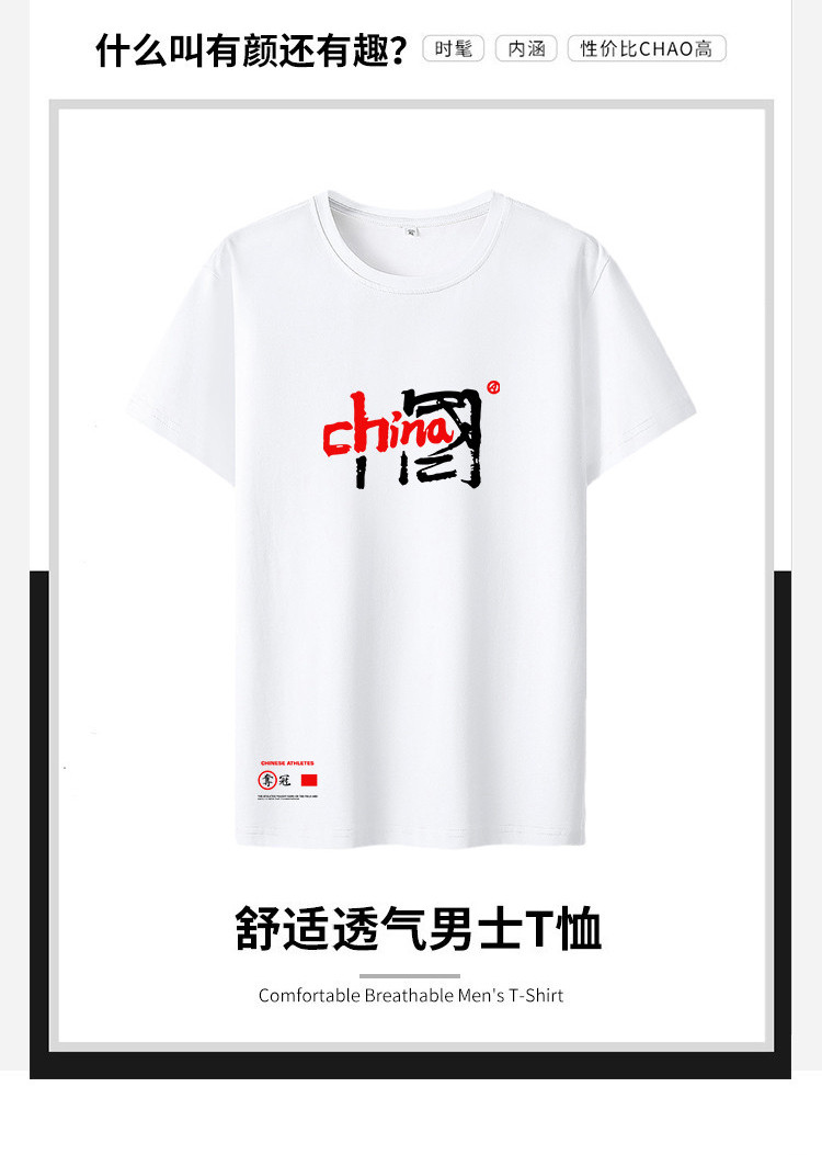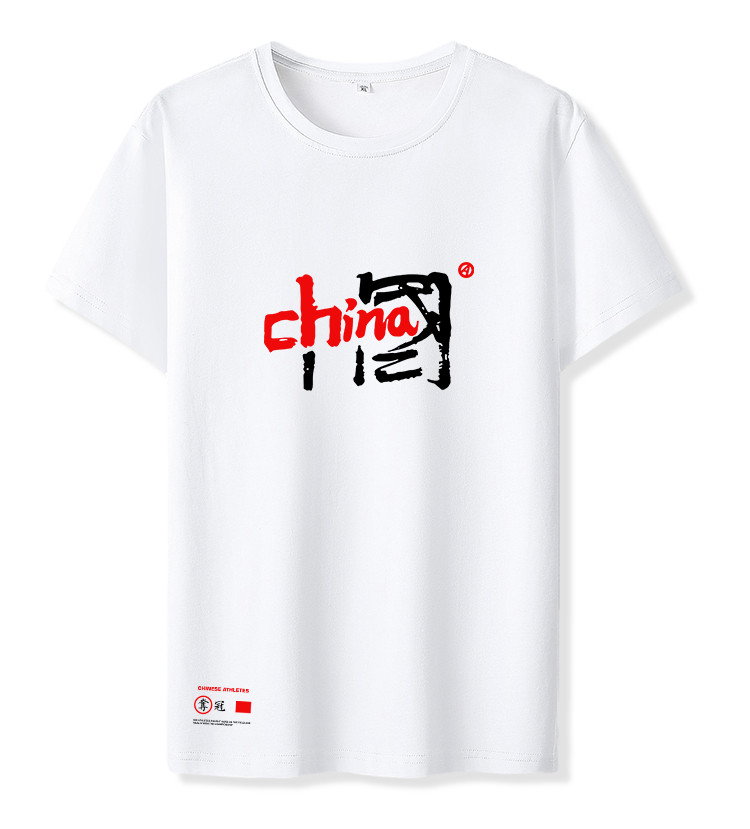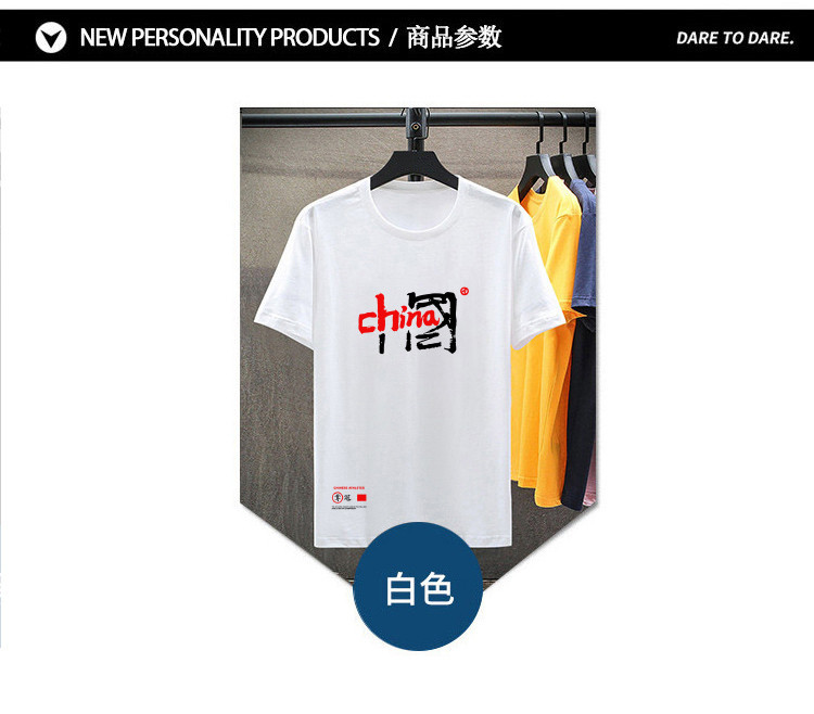 【"中國"印花】夏季新款港風(fēng)圓領(lǐng)短袖時(shí)尚純棉男式T恤