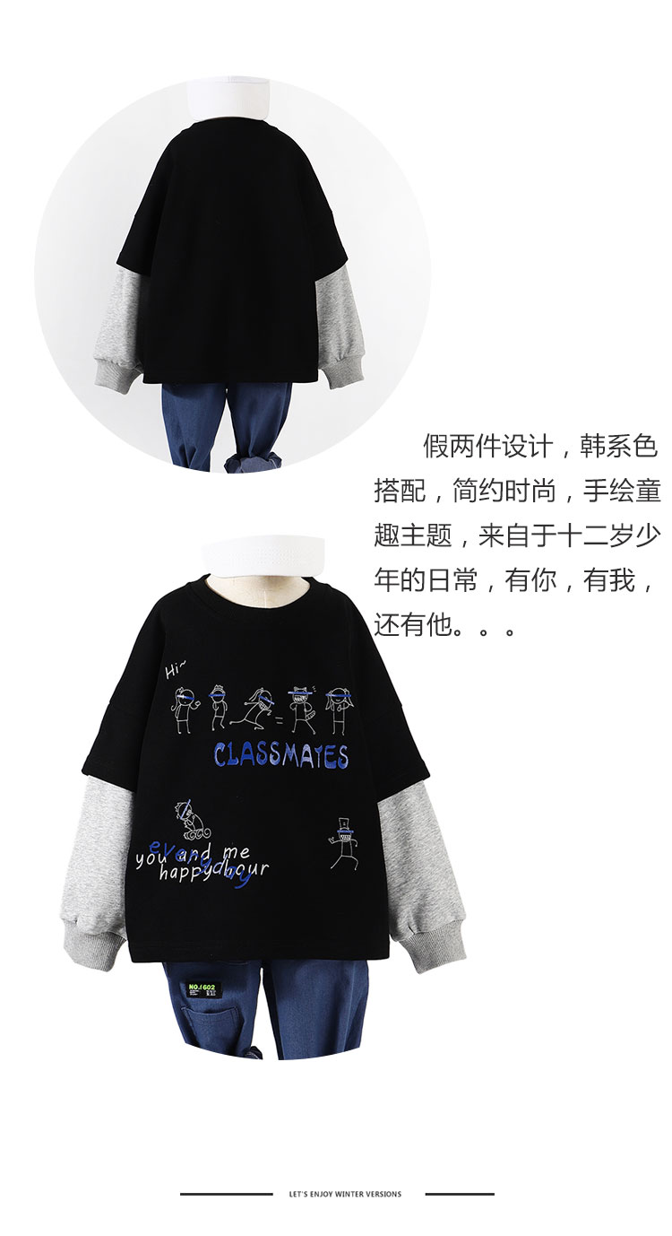 浪莎童裝男童衛(wèi)衣兒童春秋款長袖2021新款中大童打底衫韓版潮t恤