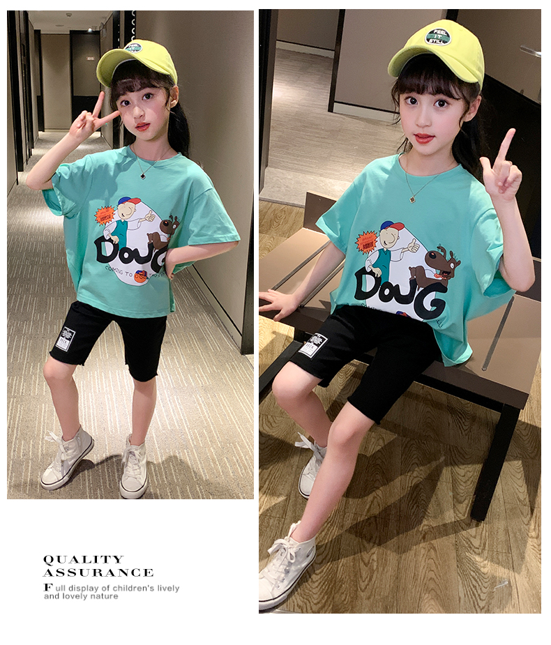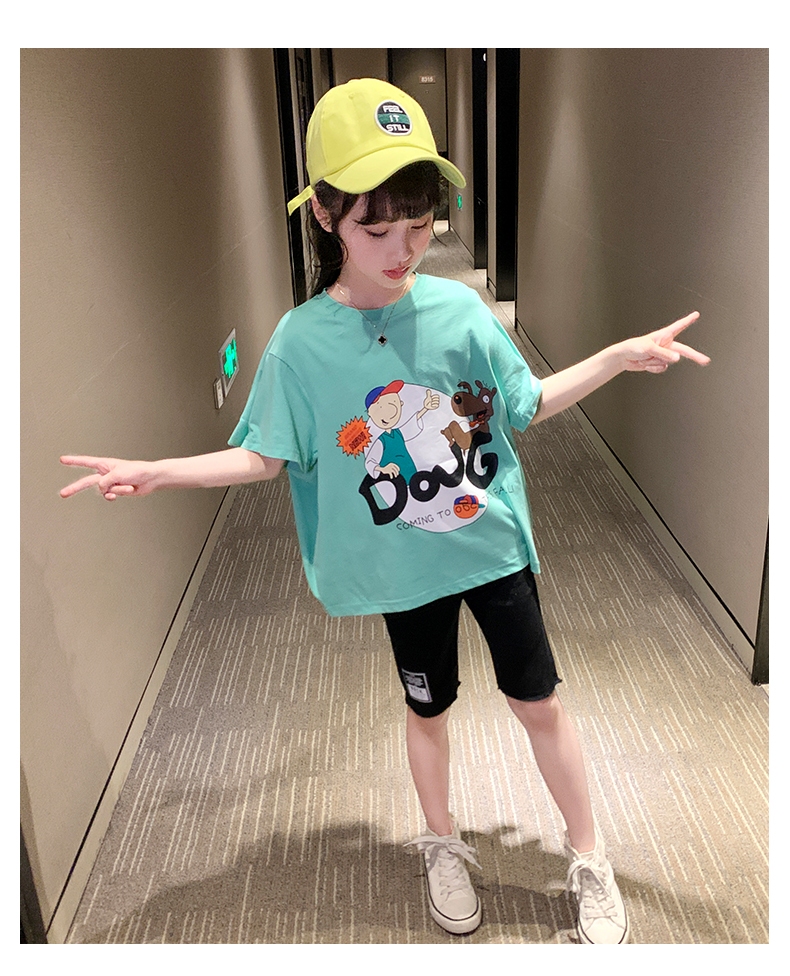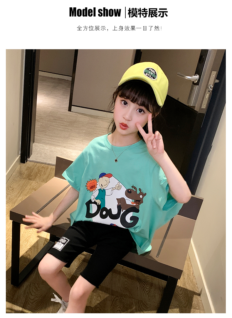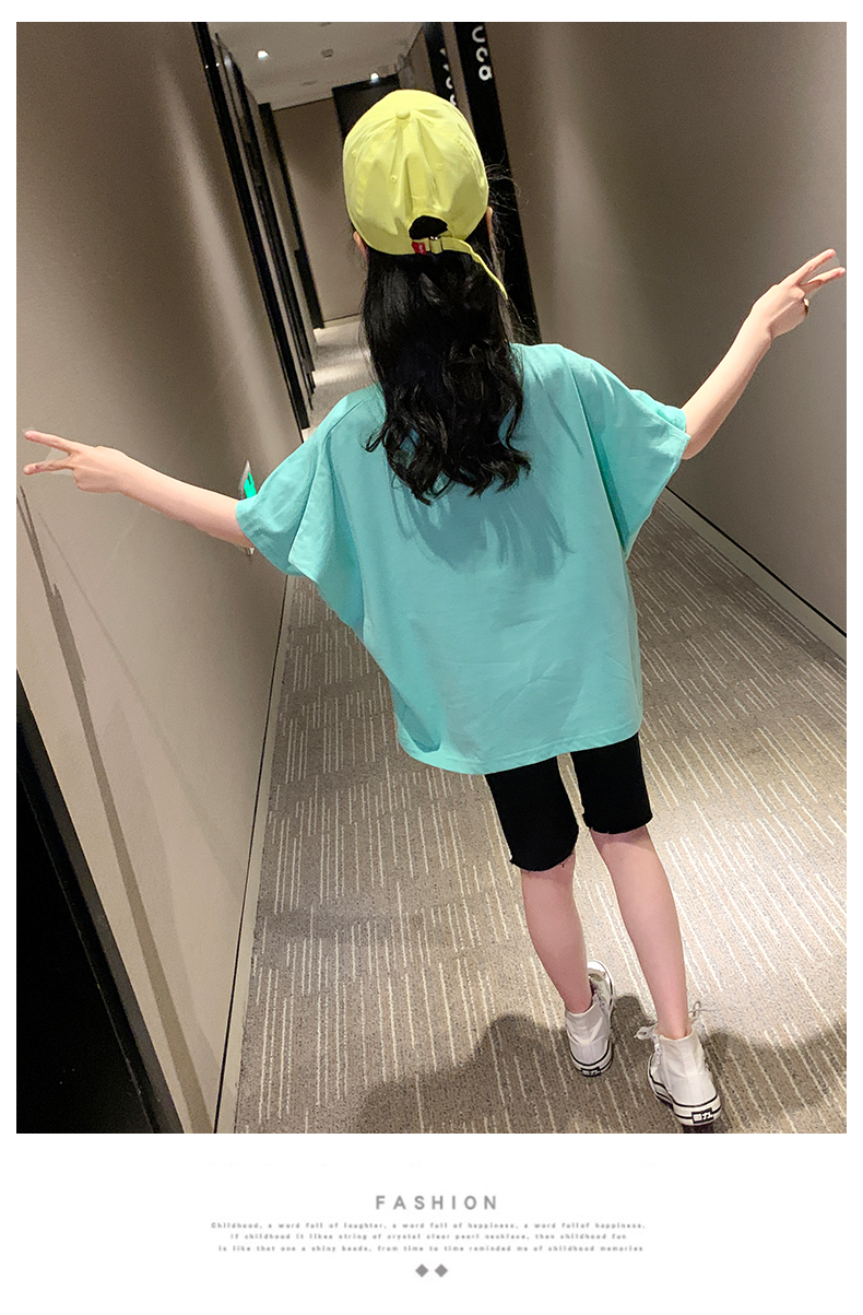 浪莎女童夏裝2021新款網(wǎng)紅洋氣兒童中大童短袖T恤女孩童裝夏季潮