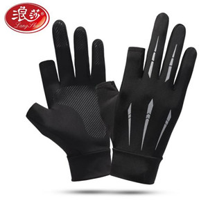 浪莎防曬手套男騎行開車手套男夏季薄款彈力速干運動手套戶外健身防滑手套LSSQ-A045-5054 黑色半指