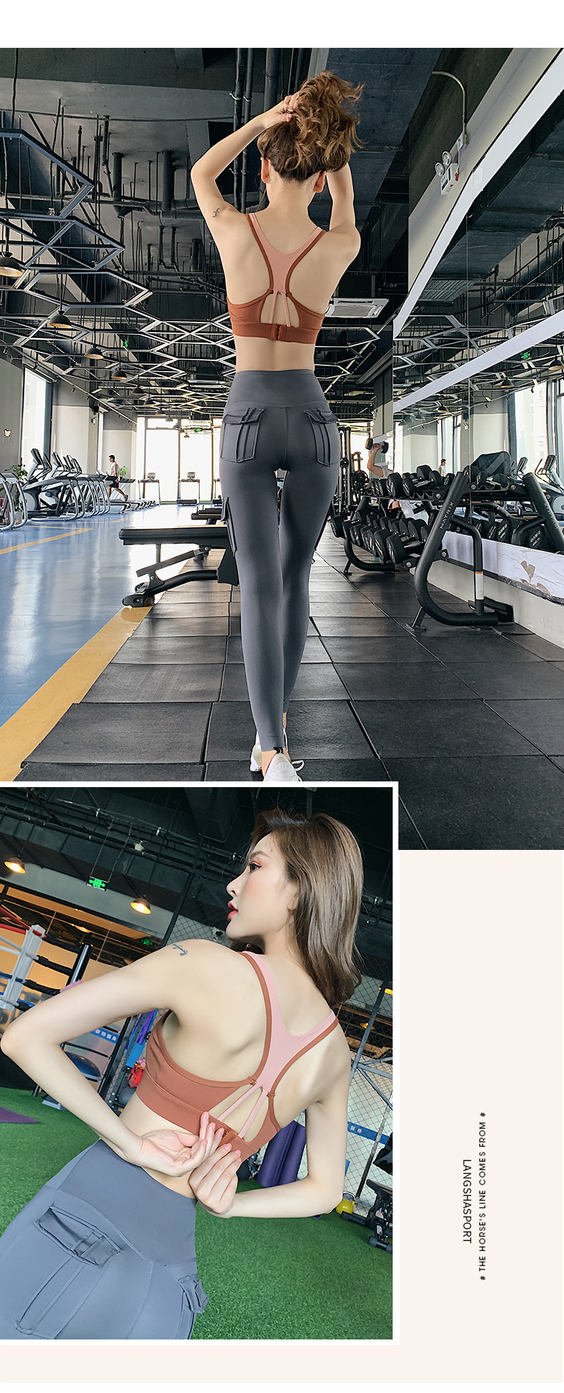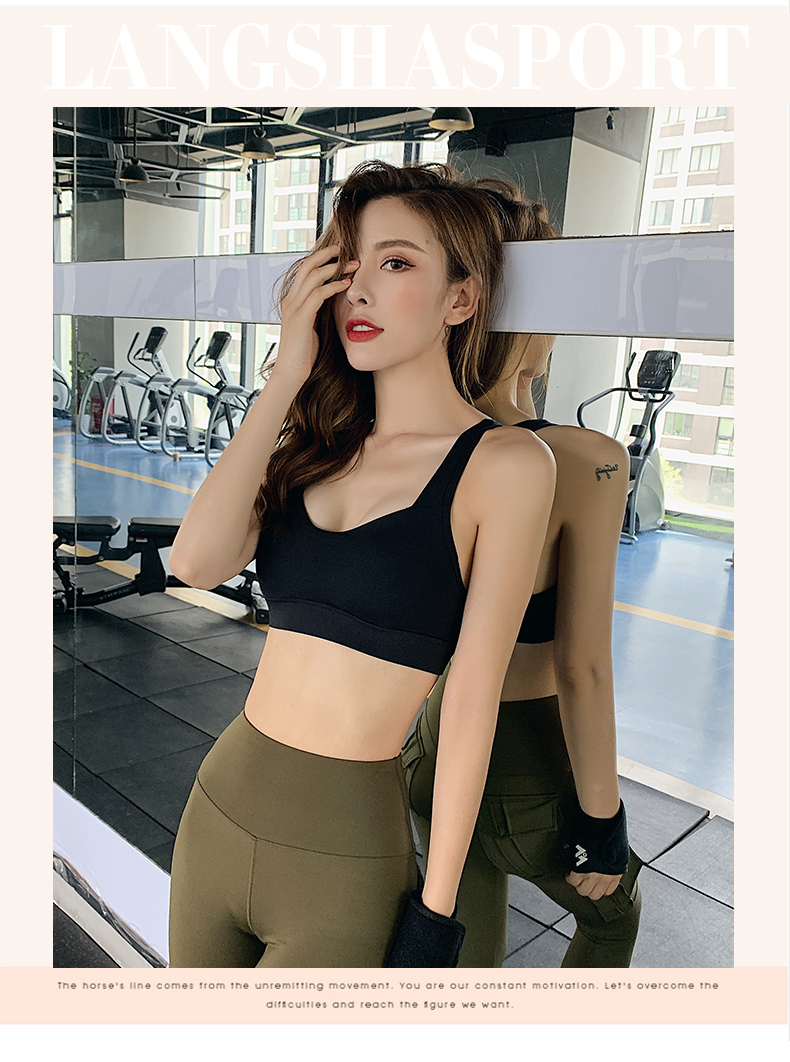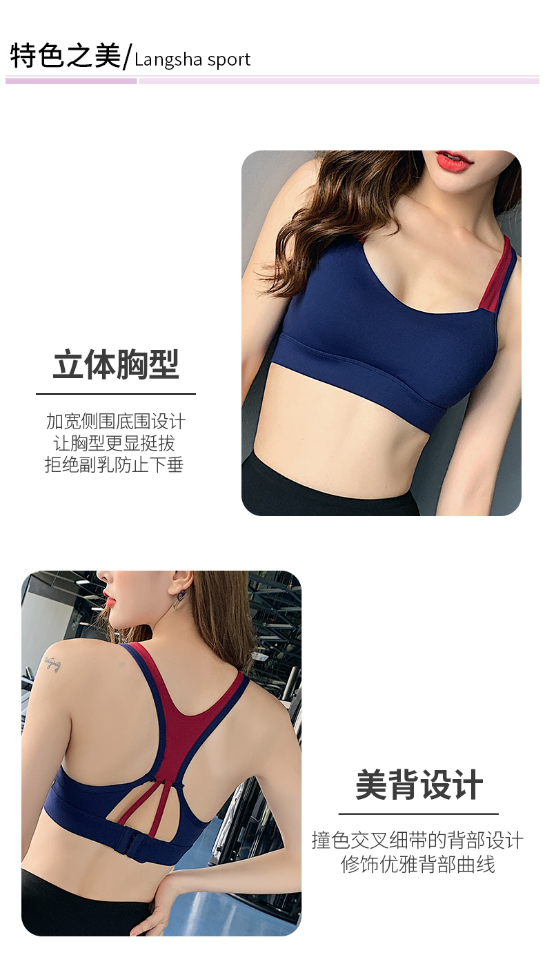 浪莎運動內(nèi)衣女搭扣防震跑步聚攏定型美背瑜伽背心一體式健身文胸