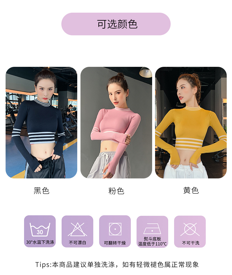 浪莎長袖健身衣女露臍性感運動T恤速干緊身春秋跑步瑜伽服上衣