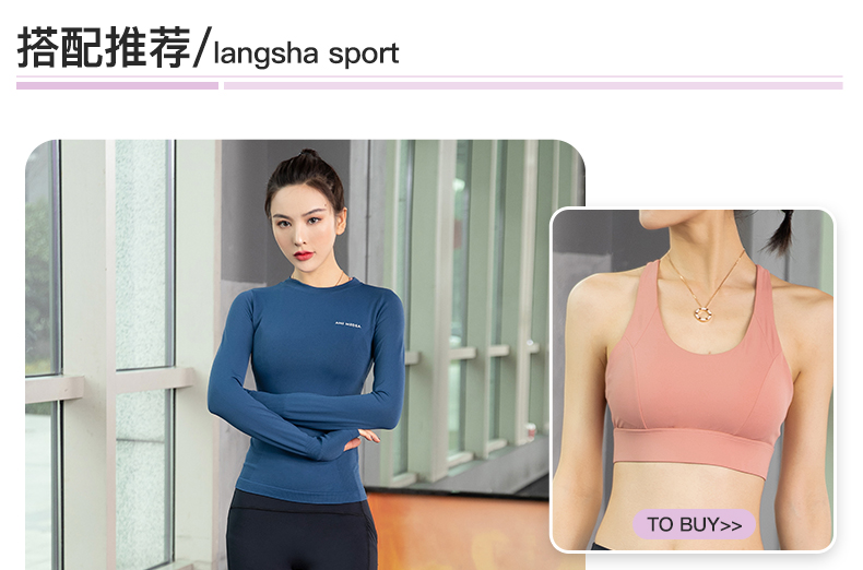 浪莎運(yùn)動(dòng)上衣女修身瑜伽服跑步秋冬吸汗緊身透氣速干新款健身長袖