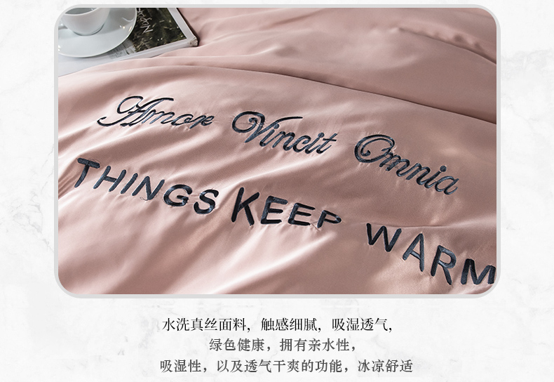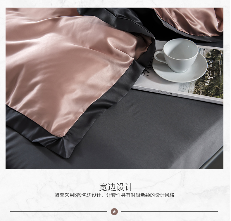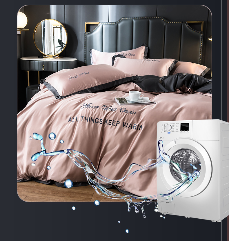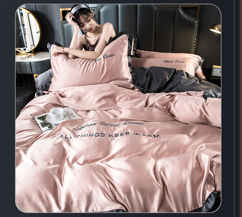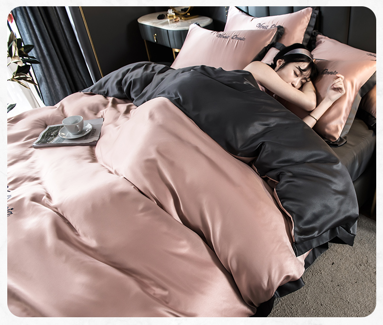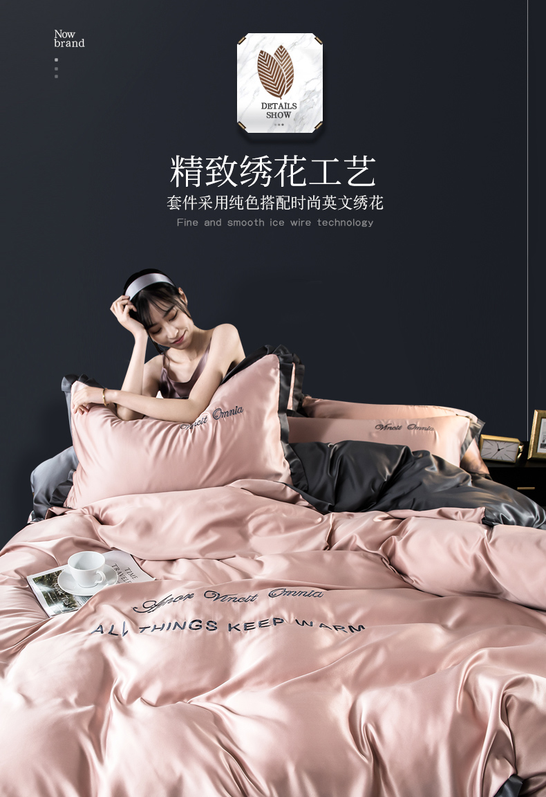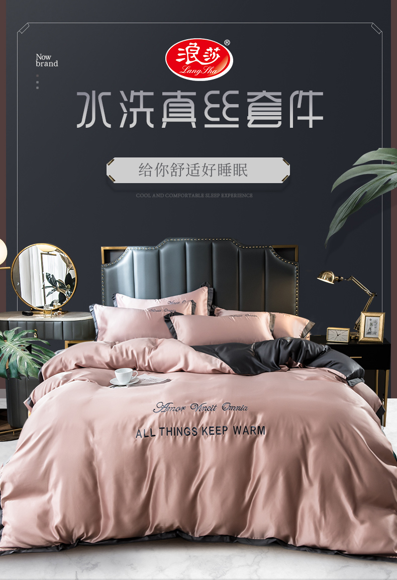 浪莎四件套水洗真絲北歐風(fēng)被套床笠床單裸睡冰絲春夏秋季床上用品
