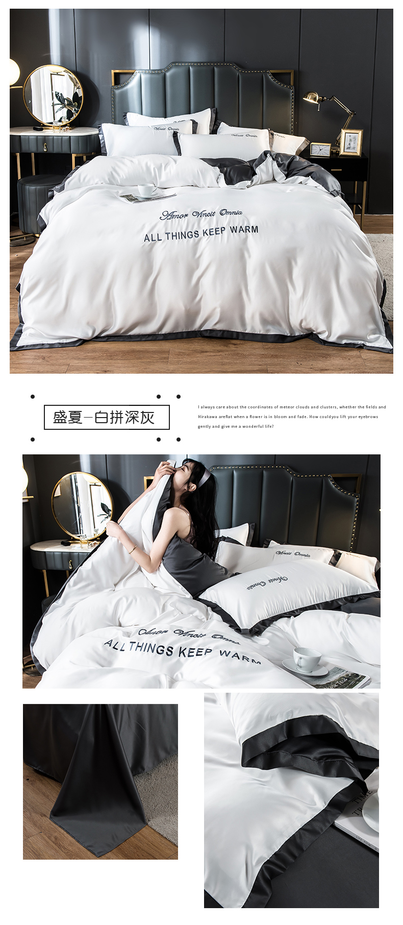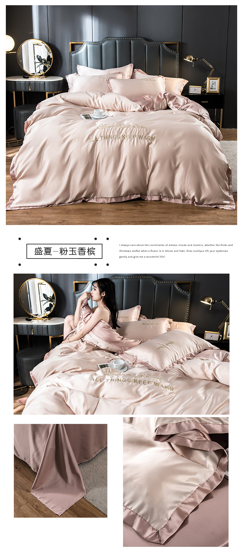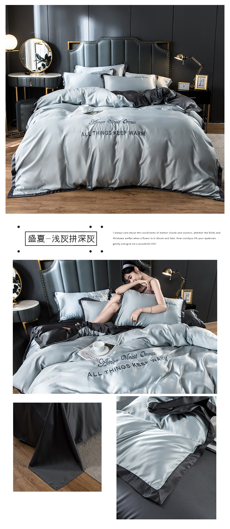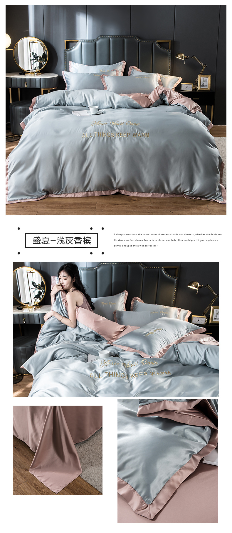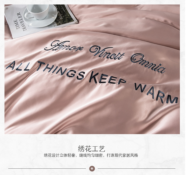 浪莎四件套水洗真絲北歐風(fēng)被套床笠床單裸睡冰絲春夏秋季床上用品