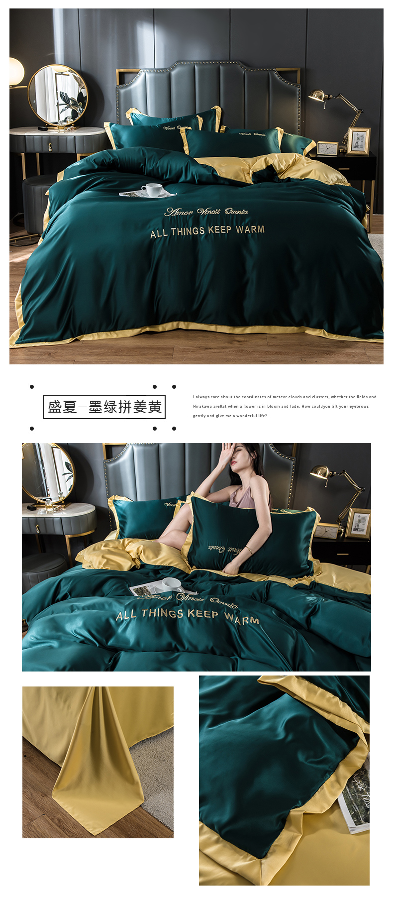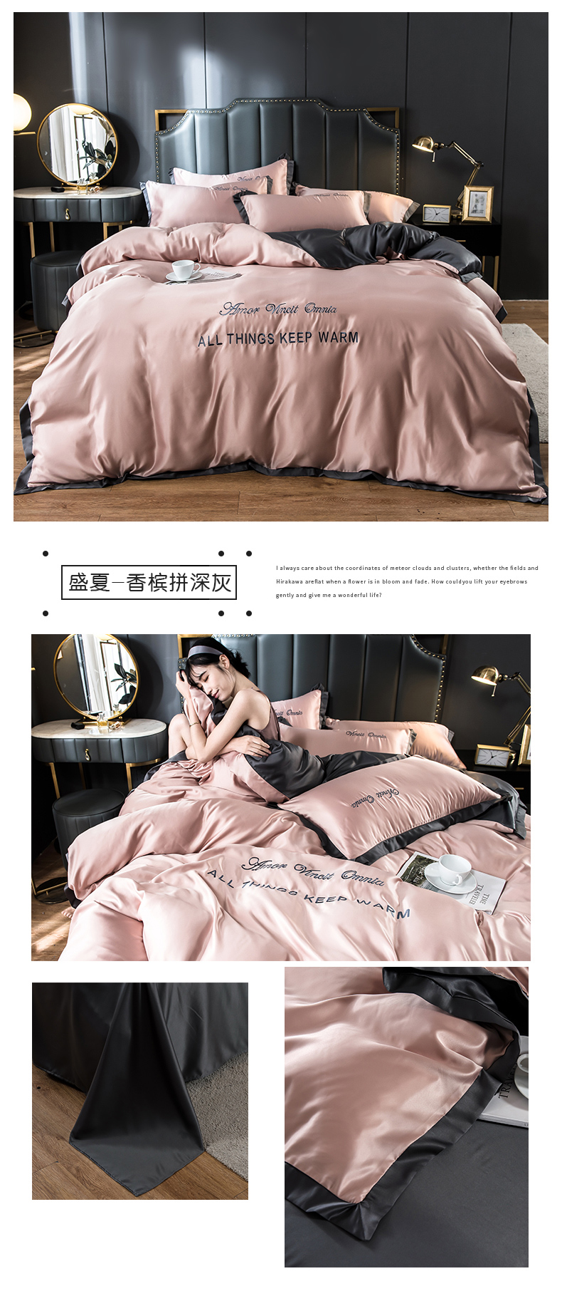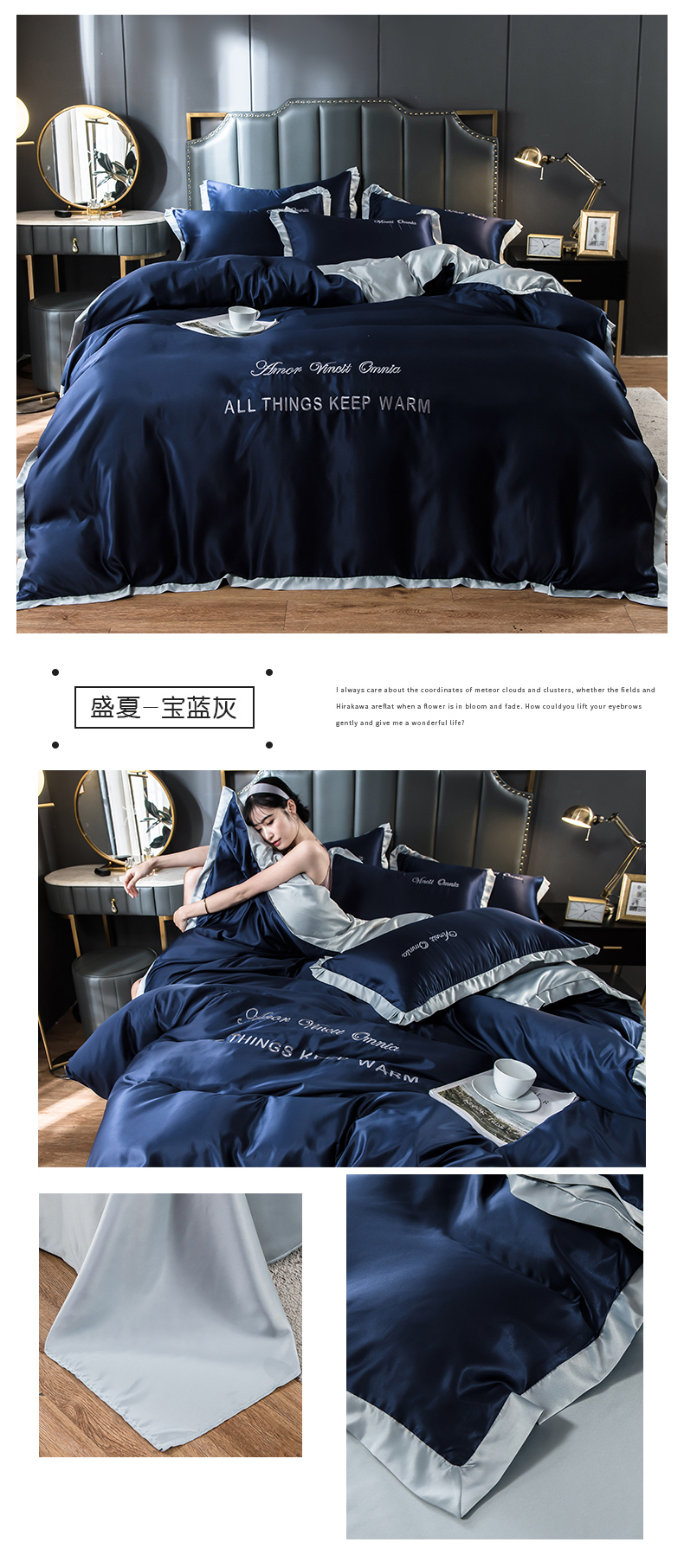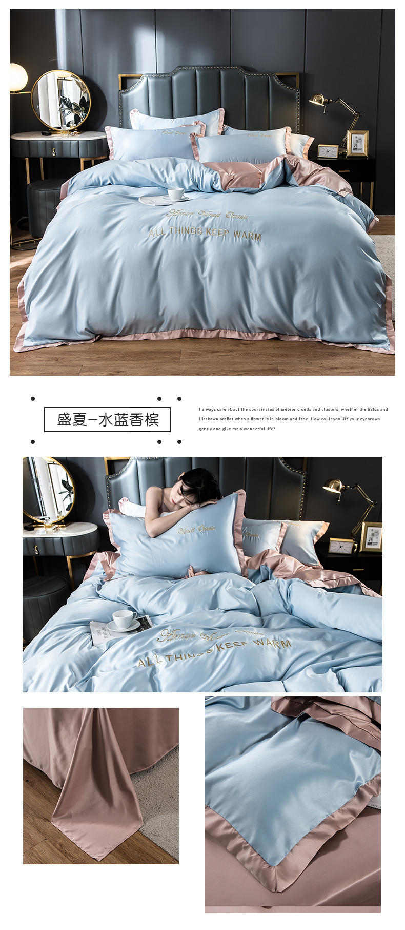 浪莎四件套水洗真絲北歐風(fēng)被套床笠床單裸睡冰絲春夏秋季床上用品