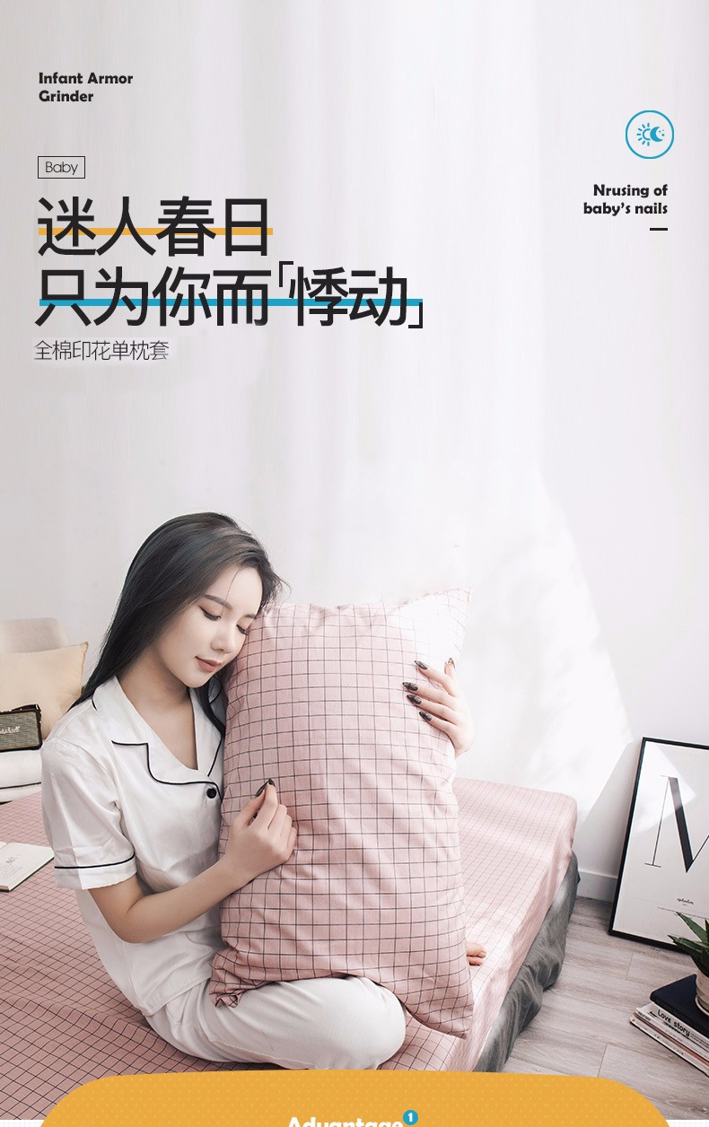 浪莎全棉枕套一對裝純棉印花枕頭套單人學(xué)生宿舍枕芯套48x74cm