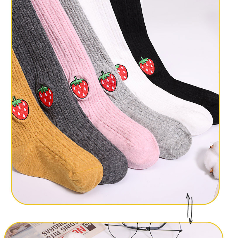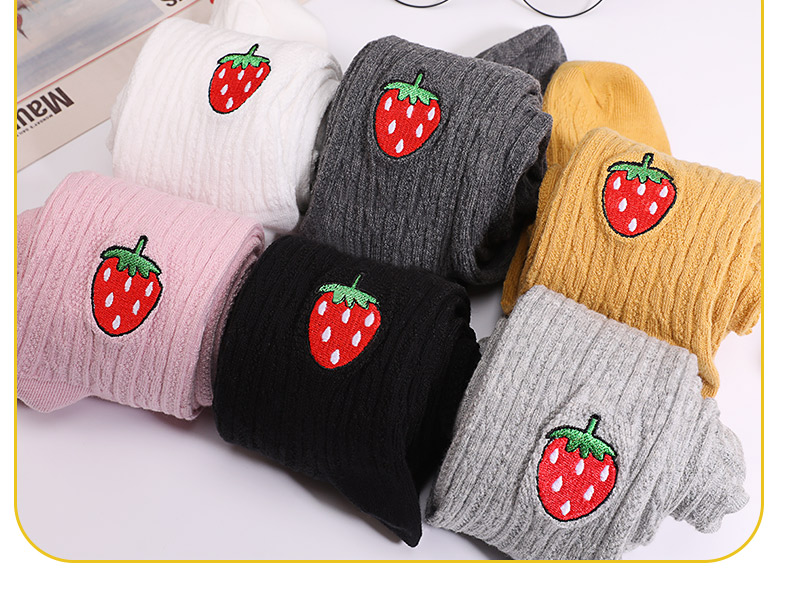 浪莎兒童連褲襪秋冬季女童刺繡草莓打底襪寶寶糖果色麻花條紋襪子