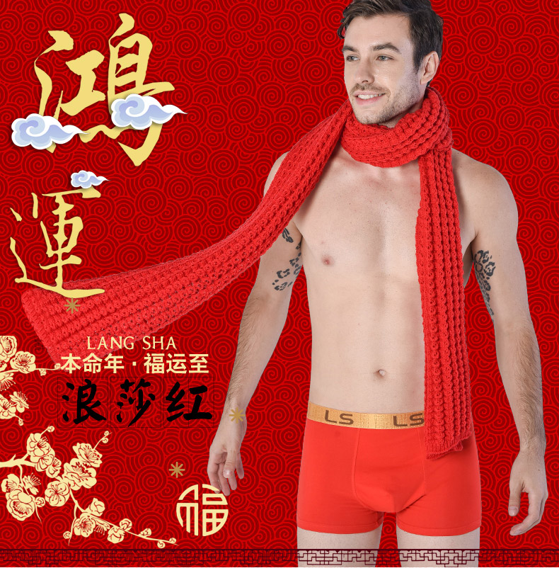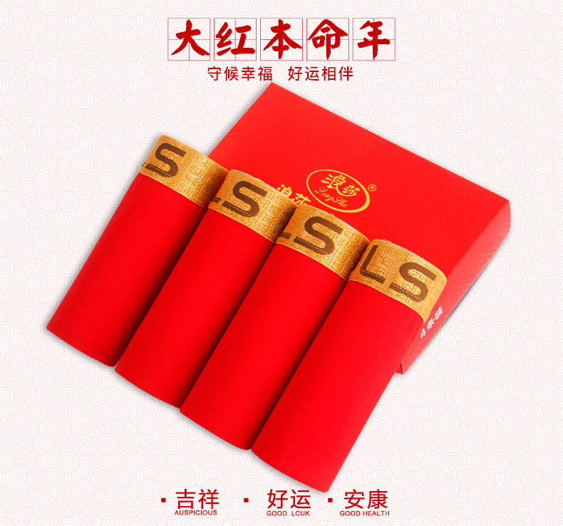 浪莎男士內(nèi)褲男純棉本命年牛四角褲紅色平角褲結(jié)婚禮物男式短褲頭